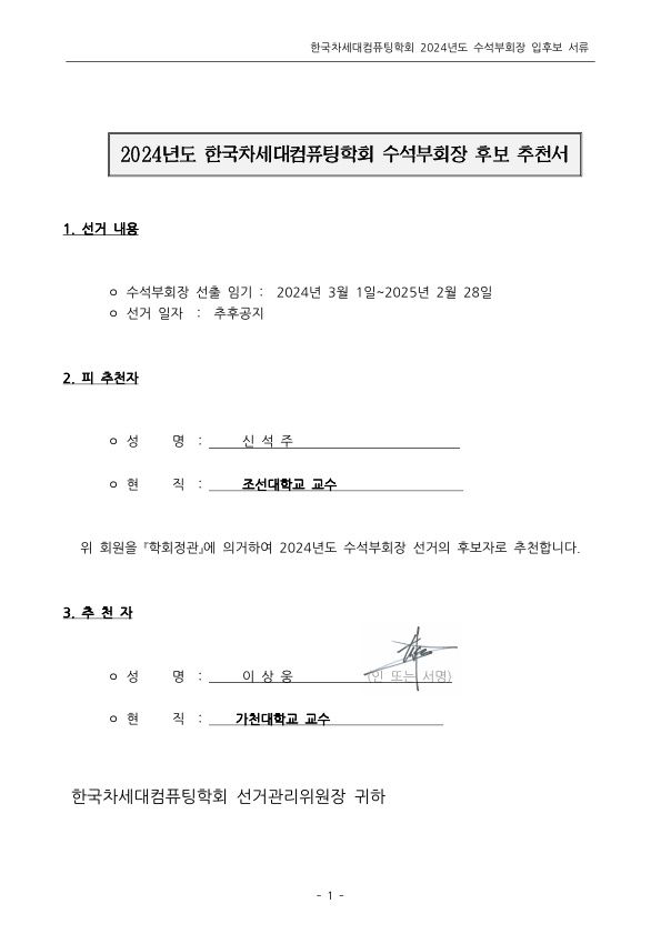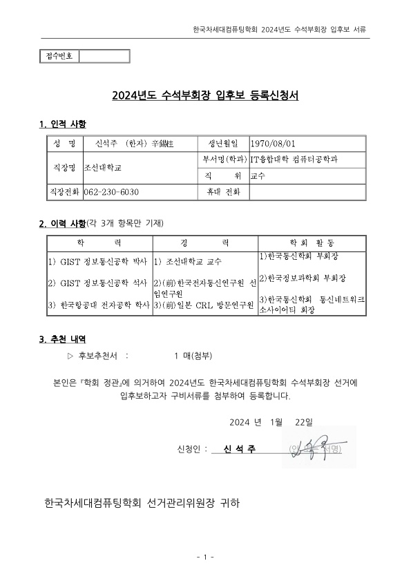 1. 수석부회장 등록신청서