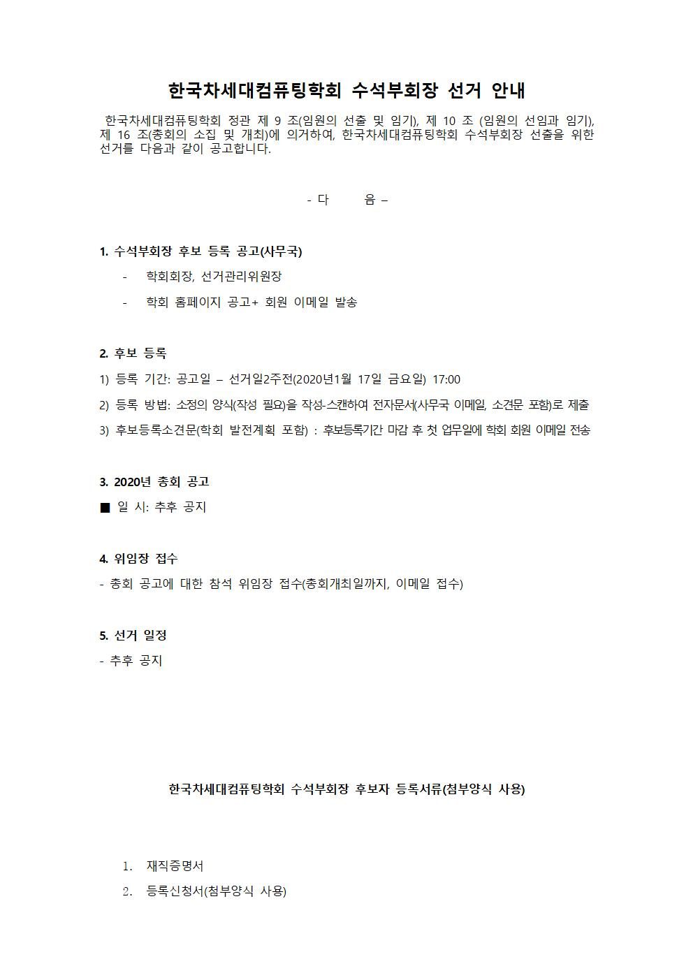 [KINGPC] 한국차세대컴퓨팅학회 수석부회장 선거 공고
