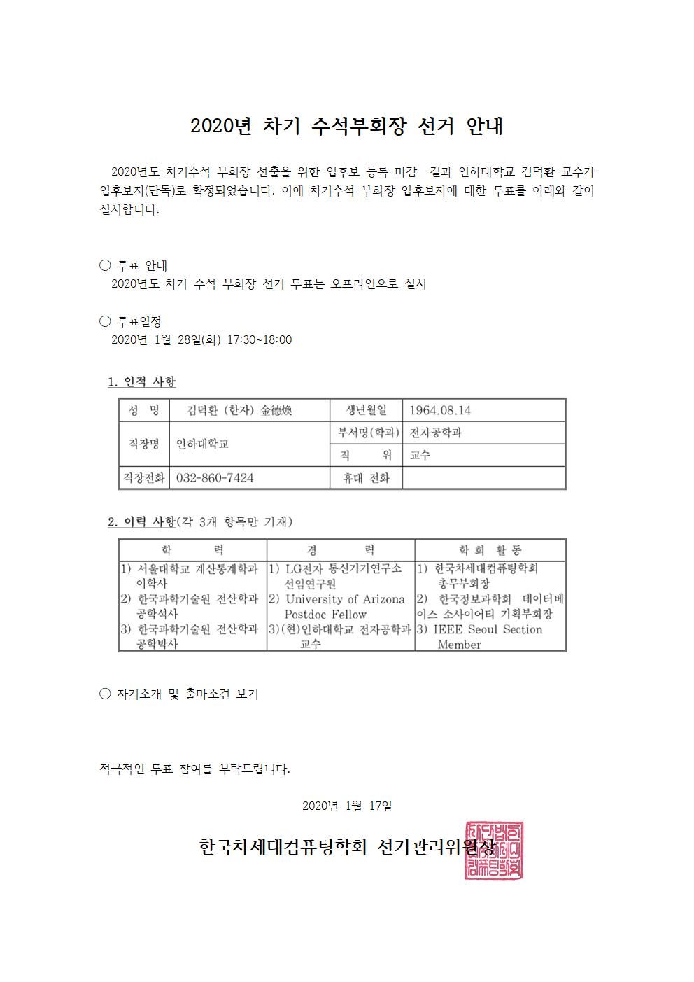 [KINGPC] 한국차세대컴퓨팅학회 2020년 차기 수석부회장 공고